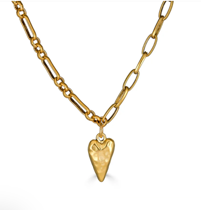 Heart Necklace A modern and minimalist necklace defined by its casual elegance, this mixed link gold chain necklace will elevate any day-to-day look. Featuring a handmade heart pendant for just the right touch of interest and detail.
