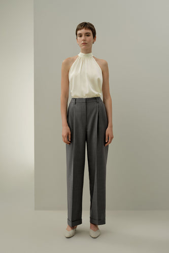 Pleated Scuba Crepe Wide-Leg Pants 254006