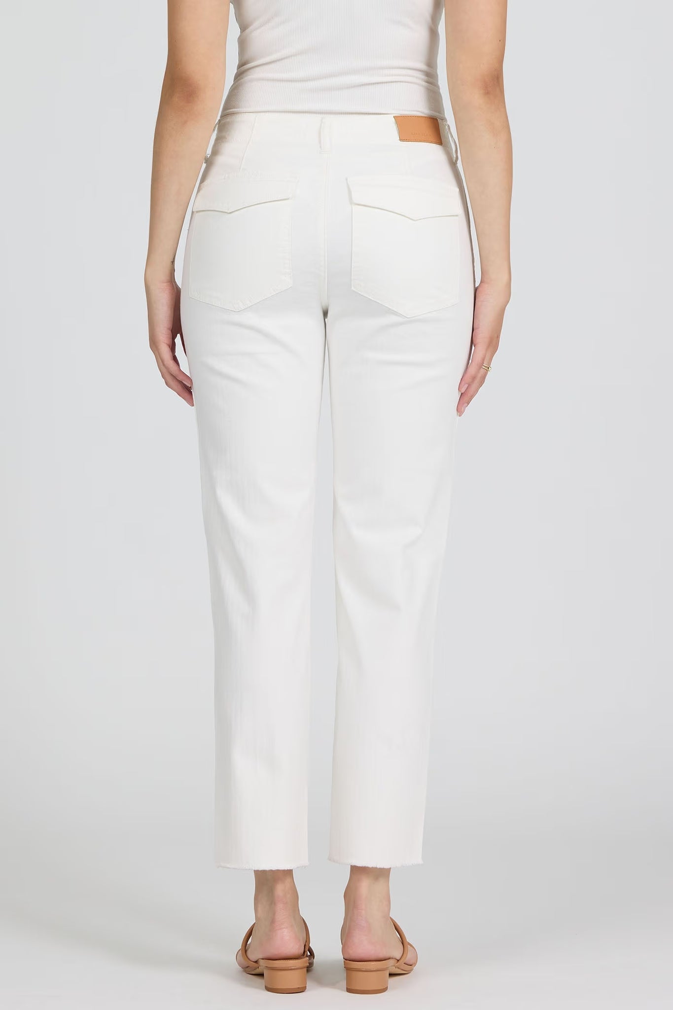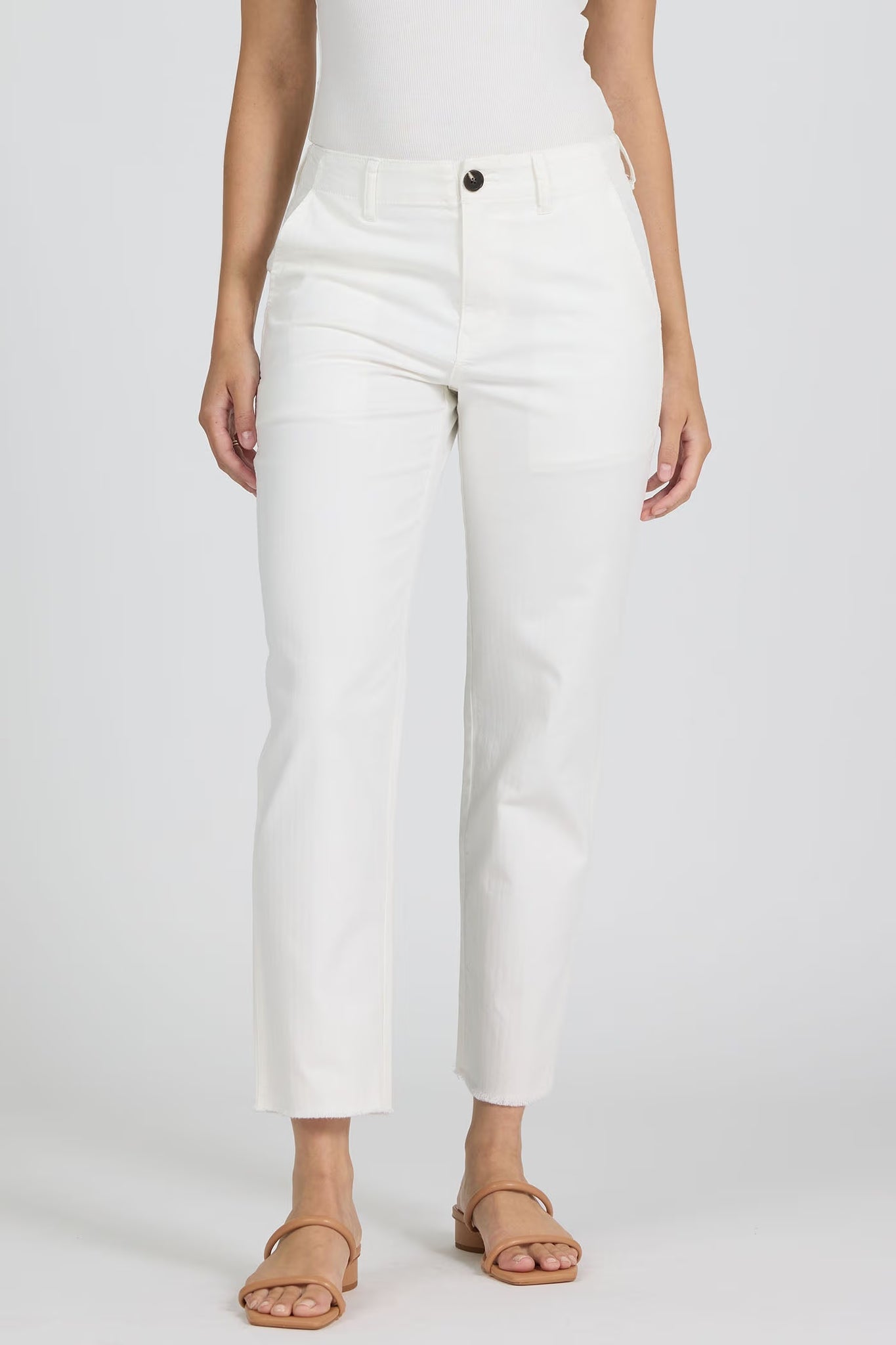 Elevate your wardrobe with these chic ivory pants, featuring a cropped style and clean hem that adds a modern touch.