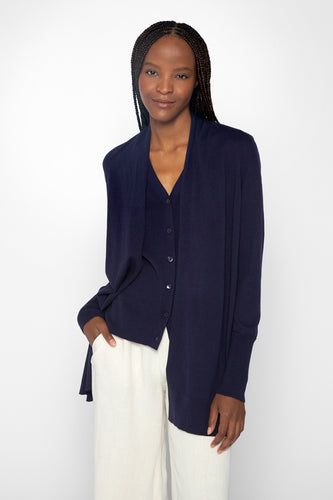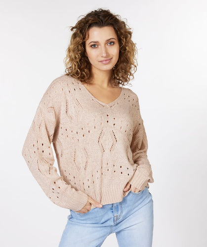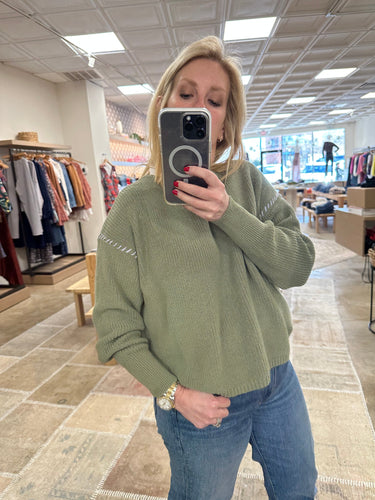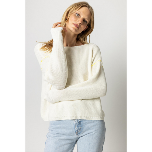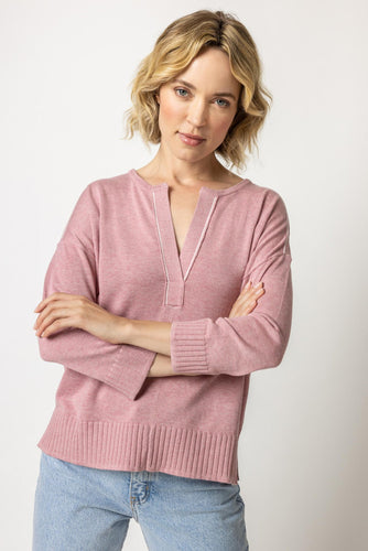 Lilla P 3/4 Sleeve Split Neck Sweater, Tuberose & Marlin