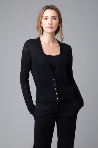 Kinross Thick and Thin Fitted Cardigan, Black