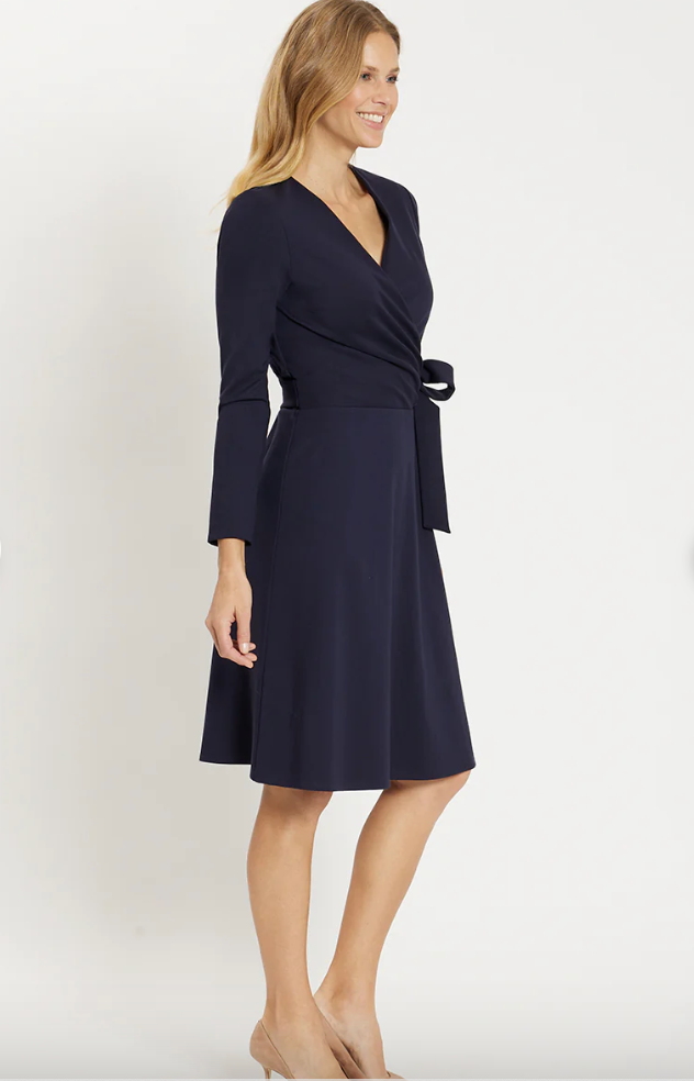 Introducing Farrah! An elegant and sophisticated surplice-style wrap dress in Jude Ponte featuring long sleeves, a V-neckline and a beautiful A-line skirt, enhanced by a self-tie belt that cinches at the waist for a figure-flattering fit. This dress is sure to be a standout winner for your wardrobe! Available in Bluebell and Dark Navy.